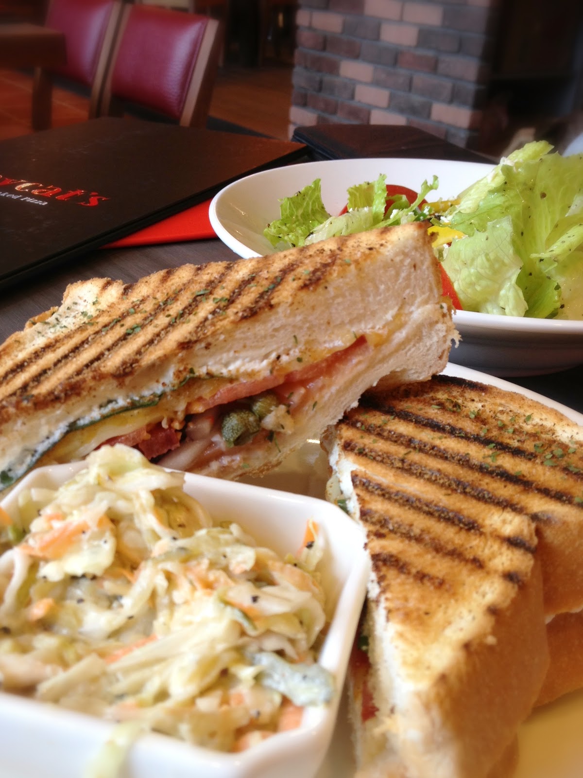 這個panini中間餡料夠大方,外面土司也壓烤得鬆酥不會太硬,意外的是....原本以為莫扎瑞拉起司已經讓我很夢幻了,但裡面的瑞可達起司居然是這個三明治的靈魂,它的口感比莫扎瑞拉還特別,緊實又綿密,泡泡又嫩嫩,有點像在吃鹹的棉花糖,相當好吃,有機會一定要找找去。